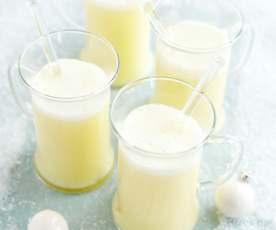 Die Milch erwärmen nicht kochen den Eierlikör hinzufügen und sofort heiß.