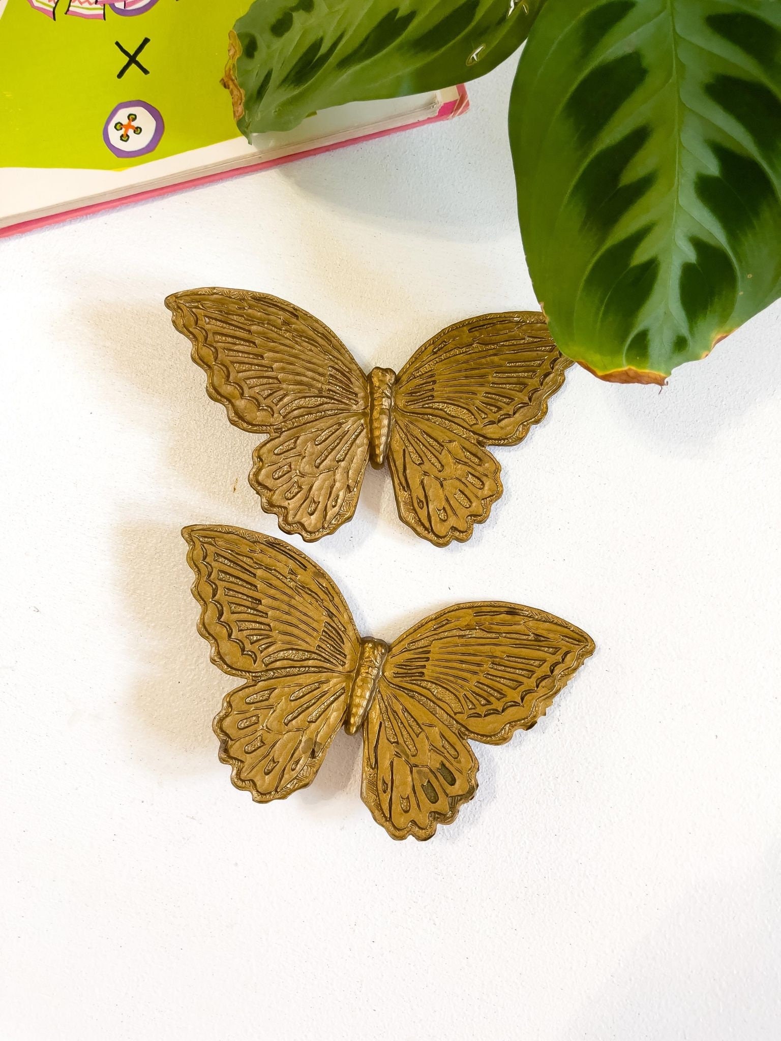 Set Of Two 2 Plastic Gold Butterflies 70s 80s Wall Decor Etsy